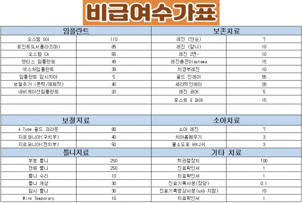 그랜드치과 비급여 수가표