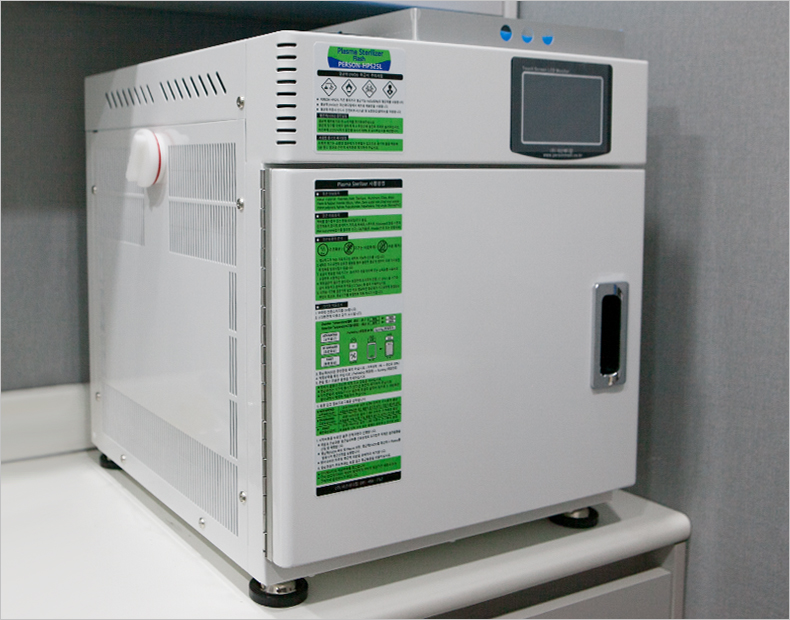 모든 기구는 플라즈마 멸균기를 이용해 세균으로부터 2차 감염을 예방해 줍니다. 또한 진료에 사용하는 핸드피스는 전용 소독기를 통해 철저하게 관리합니다.