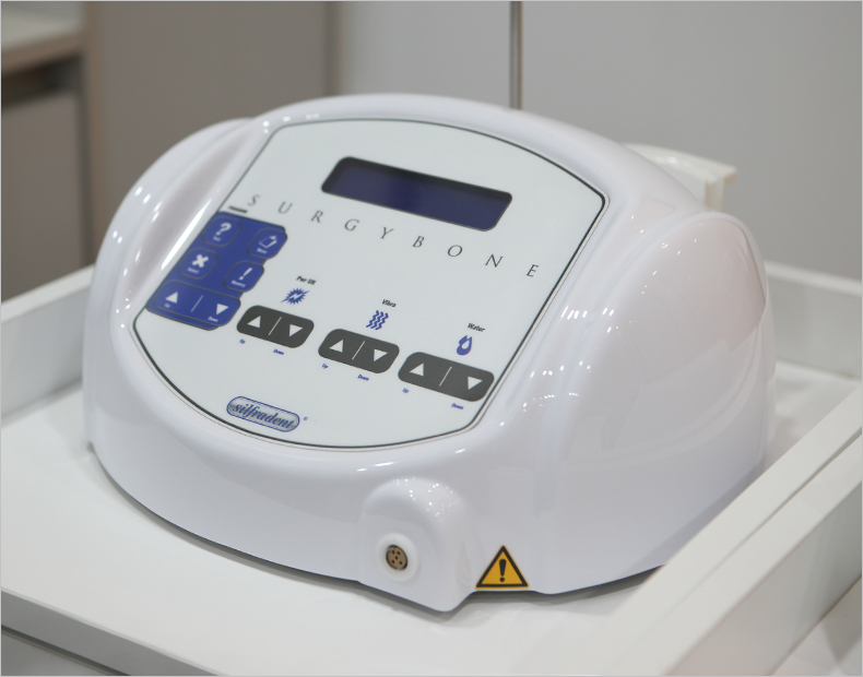 정밀한 조작이 가능한 임플란트 엔진과 경조직의 뼈를 정교하게 절제할 수 있는 초음파 서저는 성공적인 임플란트 시술을 위해서 꼭 필요한 장비입니다.