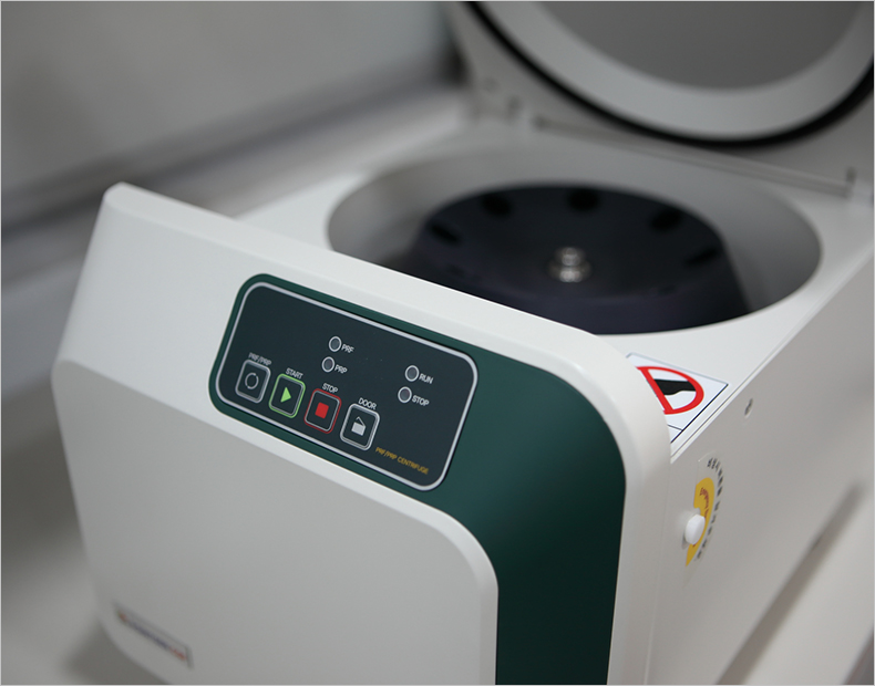 체혈한 혈액을 원심 분리기를 통해 혈소판을 분리해 뼈이식에 사용하면 잇몸뼈와 잇몸재생을 촉진시켜 주고 면역력을 강화해 염증을 예방하는데 효과를 기대할 수 있습니다.