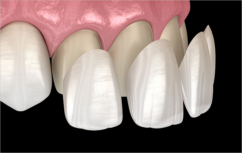 라미네이트는 보통 전치부의 표면을 최소한으로 삭제한 후 인조 손톱을 붙이듯이 치아 색과 유사한 얇은 도재를 부착해 치아의 모양을 개선해 주는 심미 보철치료입니다. 이러한 라미네이트 시술은 앞니의 크기나 형태 색상 등을 예쁘게 만들어 줄 수 있으며 어느 정도 삐뚤어진 치아도 가지런하게 만들 수 있습니다.